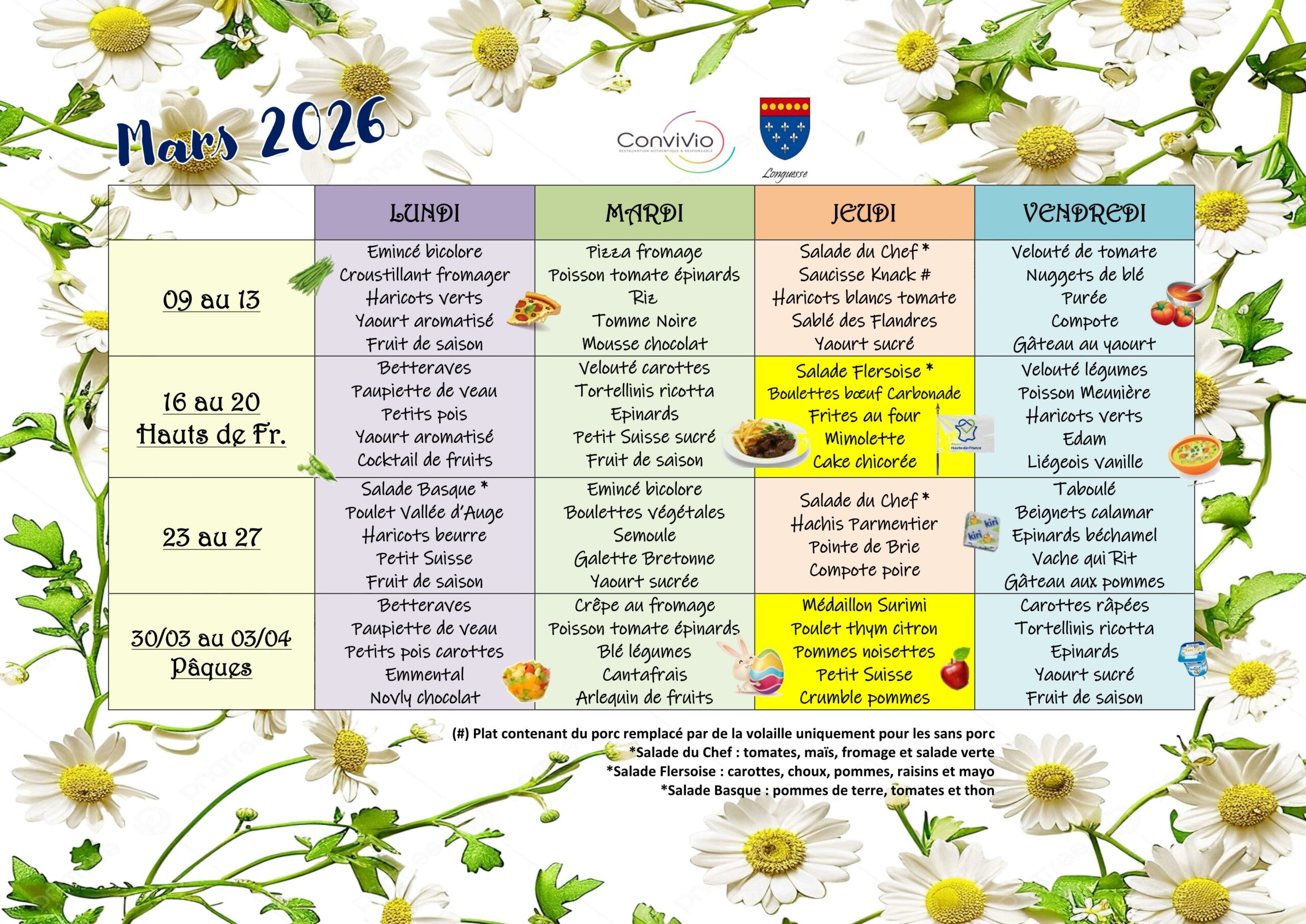 Menus scolaires Mars 2026