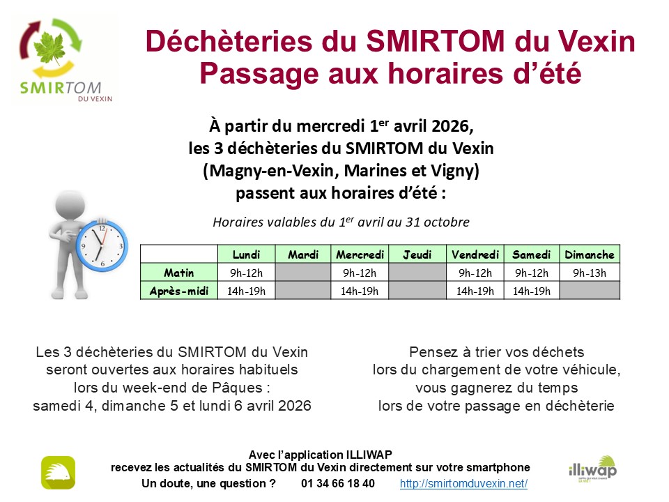 Horaires d’été 2026 de la déchetterie de Vigny