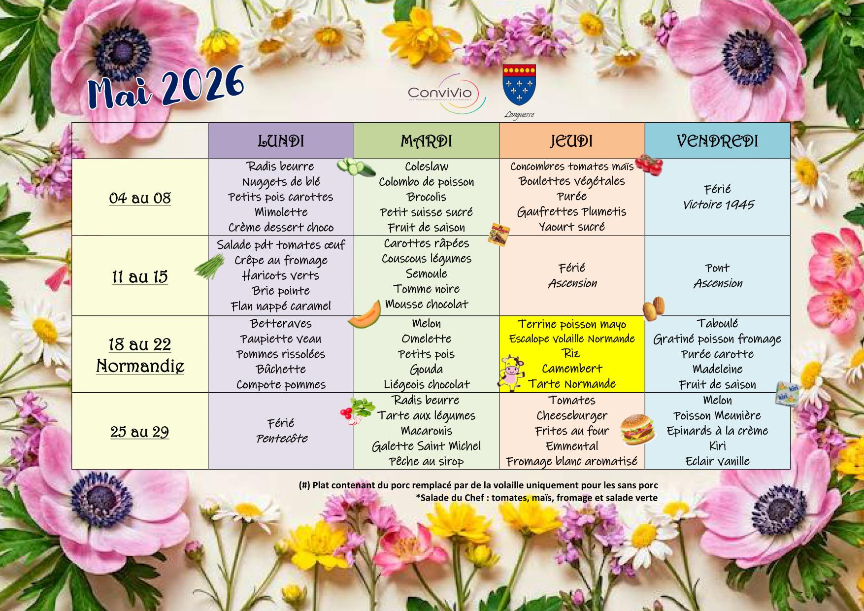 Menus Scolaire Mai 2026
